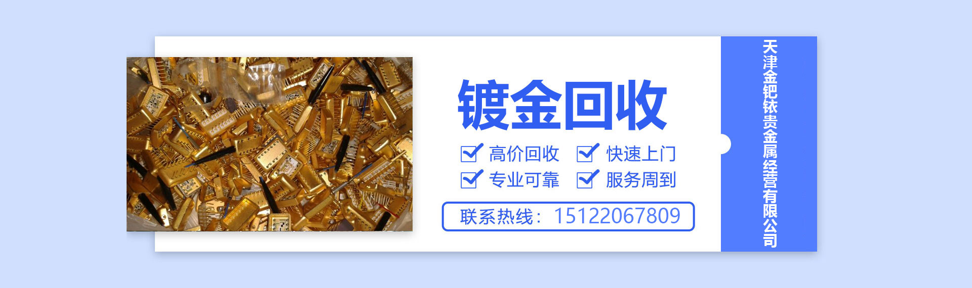 钴板钴粉回收-钛网回收-钕铁硼强磁回收-天津金钯铱贵金属经营有限公司天津金鑫环保科技有限公司,2021-04-20日成立,经营范围包括一般项目:技术服务、技术开发、技术咨询、技术交流、技术转让、技术推广;环保咨询服务;再生资源回收(除生产性废旧金属);生产性废旧金属回收;再生资源销售;再生资源加工;机械设备销售;金属结构销售;有色金属合金销售;金属材料销售;电线、电缆经营。(除依法须经批准的项目外,凭营业执照依法自主开展经营活动)许可项目:建筑物拆除作业(爆破作业除外)。(依法须经批准的项目,经相关部门批准后方可开展经营活动,具体经营项目以相关部门批准文件或许可证件为准)
